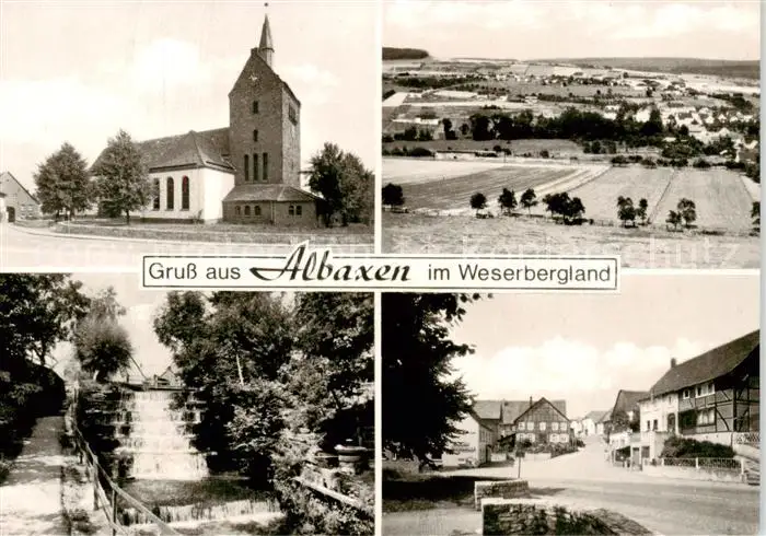 AK / Ansichtskarte 73855116 Albaxen Kirche Panorama Wasserfall Ortsansicht Albaxen