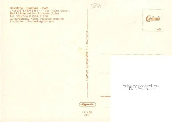 73855286 Lichtendorf Gaststaette Konditorei Café Haus Sievert Lichtendorf postalisch nicht gelaufen 1973 Erhaltung siehe scans [FriedD77] [Frierer ]