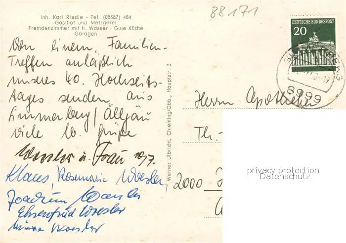 73855339 Simmerberg_Weiler-Simmerberg Panorama Gasthaus zum Adler Brunnen postalisch gelaufen 1968 Erhaltung siehe scans [FriedD77] [Frierer ]
