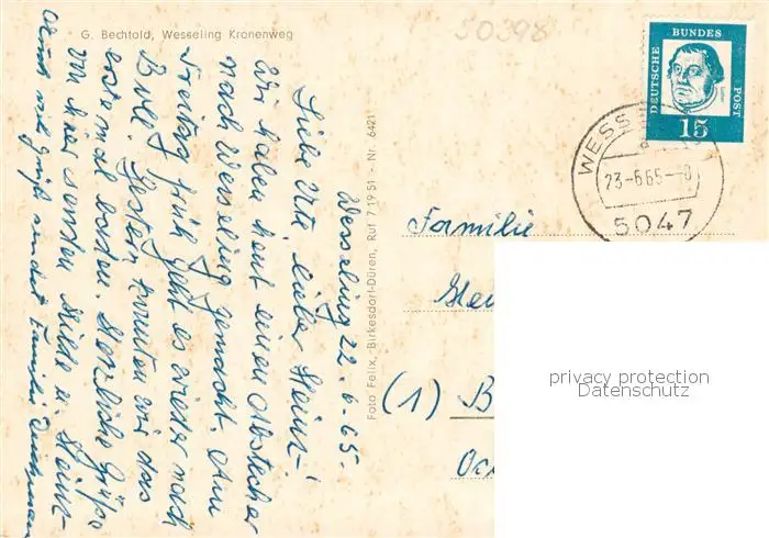 73855352 Wesseling Teilansichten Partie am Rhein Wesseling postalisch gelaufen 1965 Erhaltung siehe scans [FriedD77] [Frierer ]