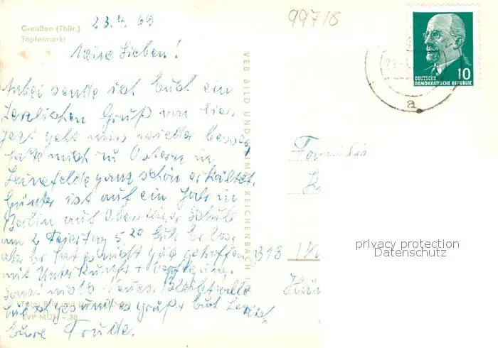 73855369 Greussen Toepfermarkt Greussen postalisch gelaufen 1969 Erhaltung siehe scans [FriedD77] [Frierer ]