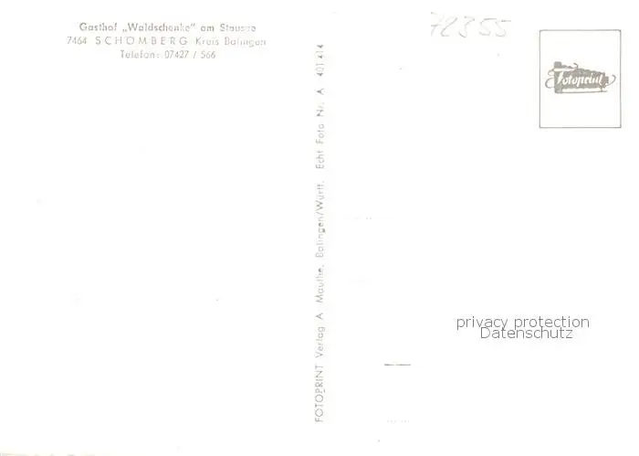 73855380 Schoemberg_Zollernalbkreis Gasthof Waldschenke am Stausee Schoemberg_Zollernalbkreis postalisch nicht gelaufen nach 1965 Erhaltung siehe scans [FriedD77] [Frierer ]