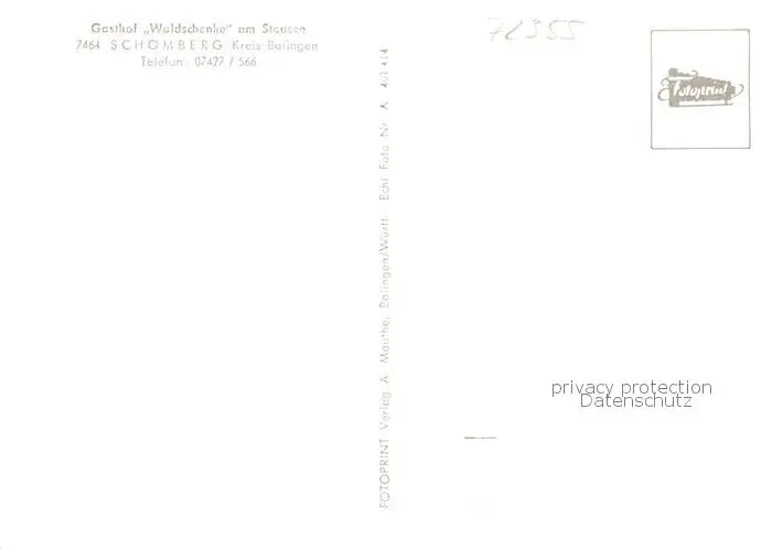 73855382 Schoemberg_Zollernalbkreis Gasthof Waldschenke am Stausee Schoemberg_Zollernalbkreis postalisch nicht gelaufen nach 1965 Erhaltung siehe scans [FriedD77] [Frierer ]