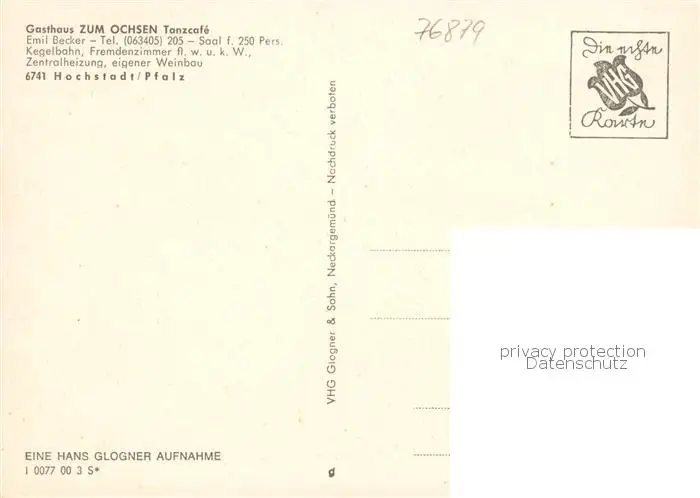 73855383 Hochstadt_Pfalz Gasthaus zum Ochsen Restaurant Kegelbahn Hochstadt_Pfalz postalisch nicht gelaufen nach 1965 Erhaltung siehe scans [FriedD77] [Frierer ]