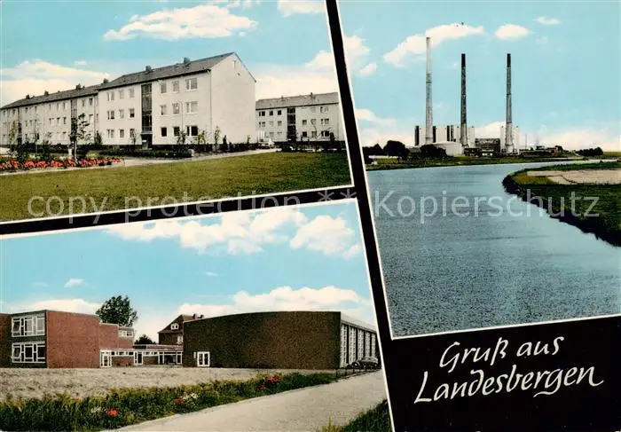 AK / Ansichtskarte 73855410 Landesbergen Wohnsiedlung Schule Partie an der Weser Kraftwerk Landesbergen