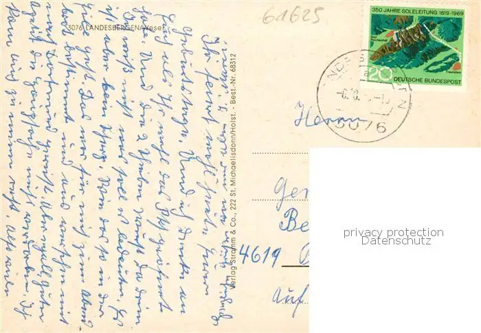 73855410 Landesbergen Wohnsiedlung Schule Partie an der Weser Kraftwerk Landesbergen postalisch gelaufen 1969 Erhaltung siehe scans [FriedD77] [Frierer ]