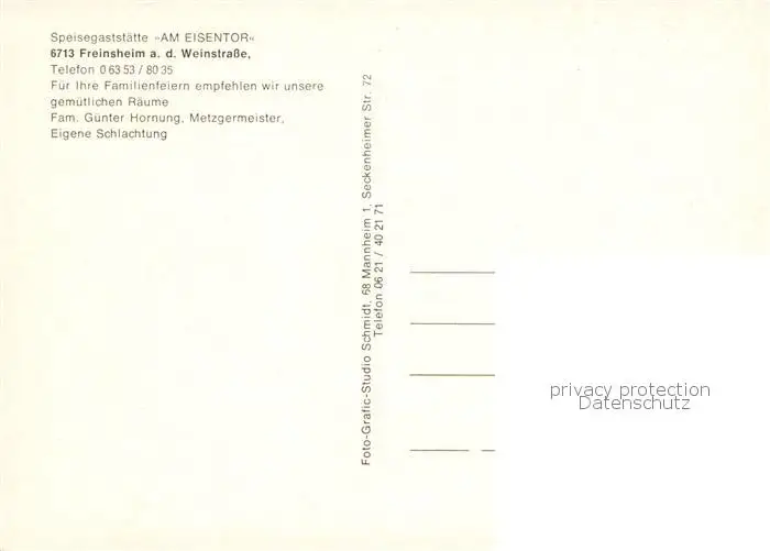 73856237 Freinsheim Gaststaette Am Eisentor Restaurant Freinsheim postalisch nicht gelaufen nach 1965 Erhaltung siehe scans [FriedD77] [Frierer ]