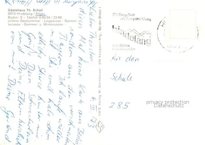 73856268 Hindelang Gaestehaus Th. Scholl Hindelang postalisch gelaufen 1973 Erhaltung siehe scans [FriedD77] [Frierer ]
