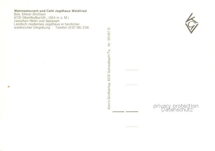73856756 Oberthulba Weinrestaurant und Cafe Jagdhaus Waldfried Oberthulba postalisch nicht gelaufen nach 1965 Erhaltung siehe scans [WerneD78] [WernPID7 ]