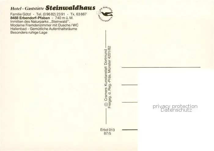 73856761 Pfaben_Steinwald Hotel Gaststaette Steinwaldhaus Fliegeraufnahme postalisch nicht gelaufen nach 1965 Erhaltung siehe scans [WerneD78] [WernPID7 ]