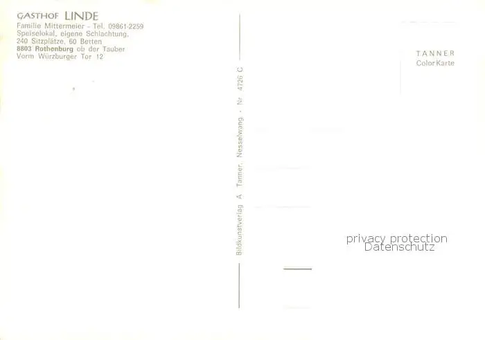 73856796 Rothenburg__Tauber Gasthof Linde Speiselokal postalisch nicht gelaufen nach 1965 Erhaltung siehe scans [WerneD78] [WernPID7 ]
