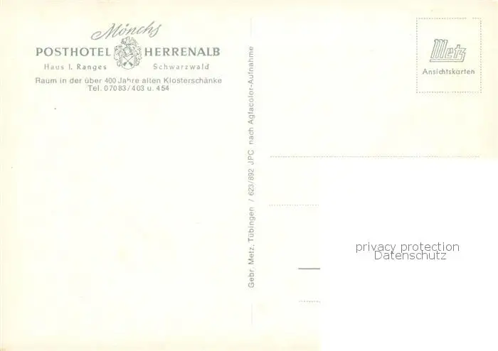 73856803 Herrenalb_Schwarzwald Moenchs Posthotel Herrenalb Raum in der alten Klosterschaenke postalisch nicht gelaufen nach 1965 Erhaltung siehe scans [WerneD78] [WernPID7 ]