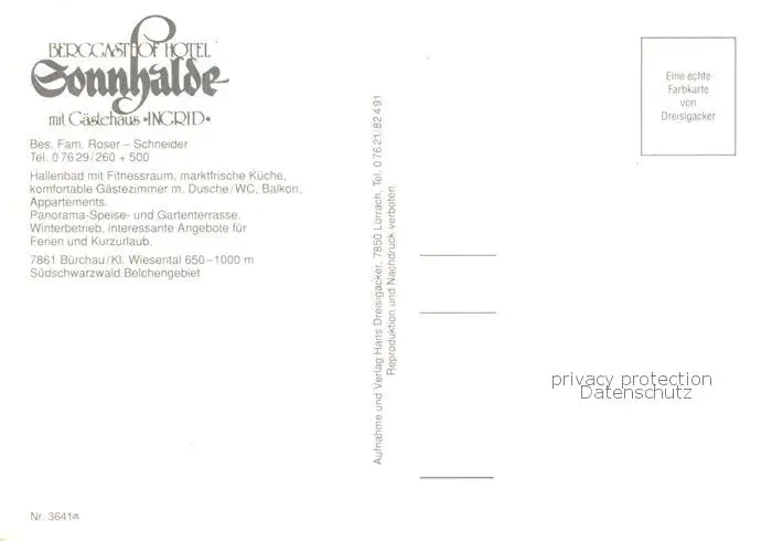 73856804 Buerchau Berggasthof Hotel Sonnhalde mit Gaestehaus Ingrid Terrasse Buerchau postalisch nicht gelaufen nach 1965 Erhaltung siehe scans [WerneD78] [WernPID7 ]