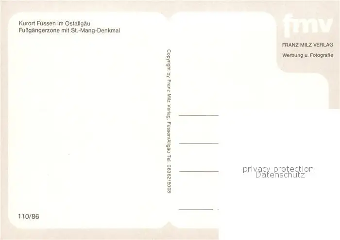 73857433 Fuessen_Allgaeu Fussgaengerzone mit St Mang Denkmal Fuessen Allgaeu postalisch nicht gelaufen nach 1965 Erhaltung siehe scans [WerneD78] [WernPID7 ]