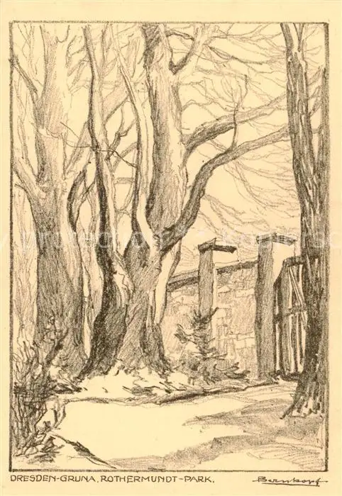 73857758 Gruna_Dresden Rothermundt Park Zeichnung Gruna Dresden postalisch nicht gelaufen 1921-1965 Erhaltung siehe scans [FriedD77] [Frierer ]