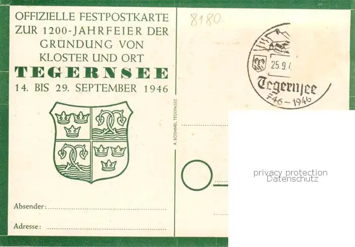73857774 Tegernsee Kloster Tegernsee Zeichnung Tegernsee postalisch gelaufen 1946 Erhaltung siehe scans [FriedD77] [Frierer ]