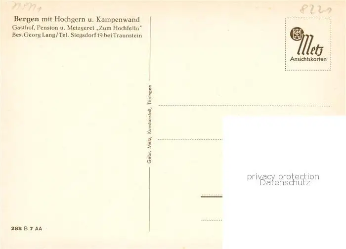 73857877 Bergen_Chiemgau Gasthof Pension Zum Hochfelln mit Hochgern und Kampenwand Bergen Chiemgau postalisch nicht gelaufen 1921-1965 Erhaltung siehe scans [FriedD77] [Frierer ]