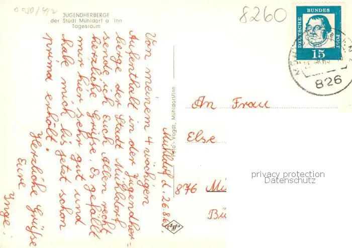 73857882 Muehldorf__Inn Jugendherberge Veranstaltungsraum postalisch gelaufen 1965 Erhaltung siehe scans [FriedD77] [Frierer ]