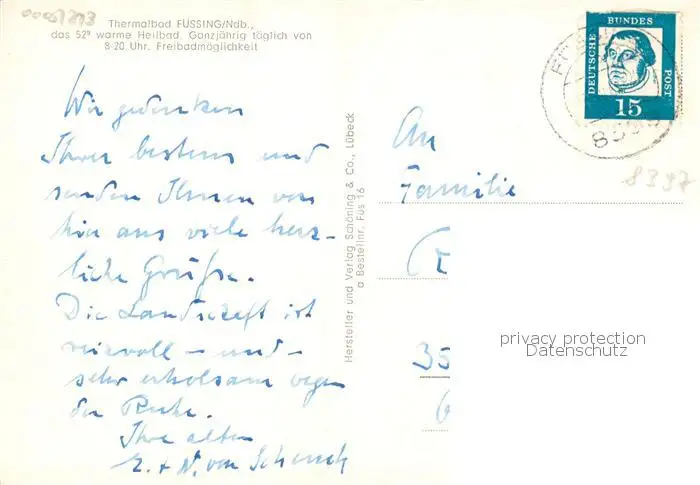 73857897 Bad_Fuessing Thermalbad Bad_Fuessing postalisch gelaufen 1965 Erhaltung siehe scans [FriedD77] [Frierer ]