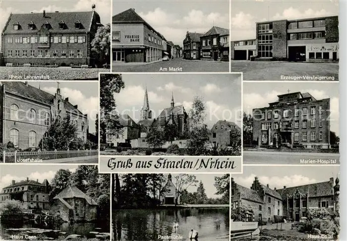 AK / Ansichtskarte 73857917 Straelen Rhein Lehranstalt Am Markt Erzeuger Versteigerung Josefshaus Marien Hospital Haus Caen Paesmuehle Haus Coull Straelen