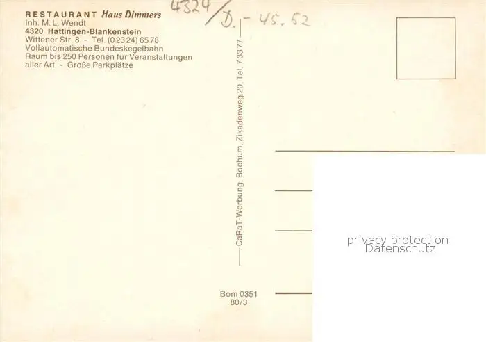 73857922 Blankenstein_Ruhr Restaurant Haus Dimmers Bungeskegelbahn Blankenstein_Ruhr postalisch nicht gelaufen nach 1965 Erhaltung siehe scans [FriedD77] [Frierer ]