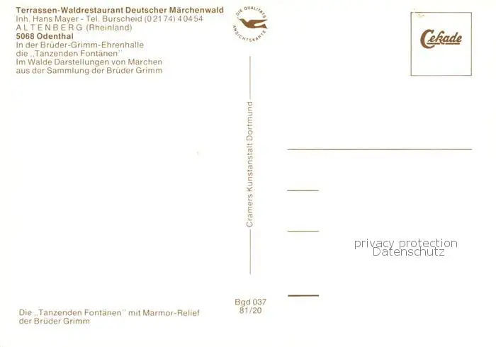 73858134 Odenthal Terrassen Waldrestaurant Deutscher Maerchenwald Brueder Grimm Ehrenhalle die Tanzenden Fontaenen Odenthal postalisch nicht gelaufen nach 1965 Erhaltung siehe scans [WerneD78] [WernPID7 ]