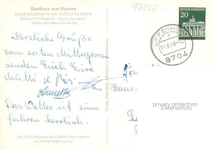 73858251 Oberickelsheim Gasthaus zum Rappen Kuenstlerkarte Oberickelsheim postalisch gelaufen 1968 Erhaltung siehe scans [FriedD77] [Frierer ]
