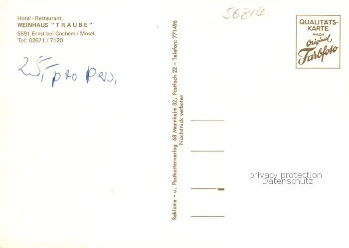 73858257 Ernst_Cochem Hotel Restaurant Weinhaus Traube Ernst_Cochem postalisch nicht gelaufen nach 1965 Erhaltung siehe scans [FriedD77] [Frierer ]