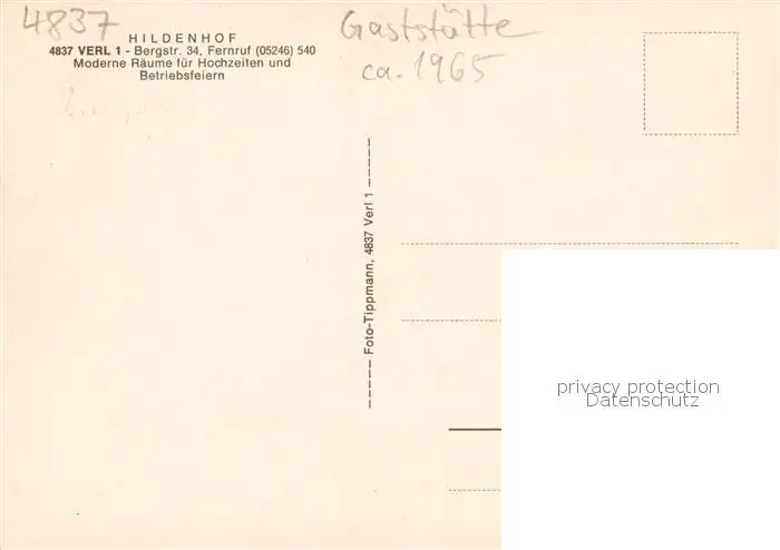 73858264 Verl Gaststaette Hildenhof Gastraum Festsaal Verl postalisch nicht gelaufen ca. 1965 Erhaltung siehe scans [FriedD77] [Frierer ]