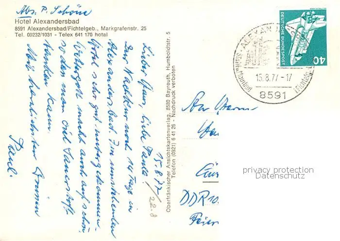 73858896 Alexandersbad_Bad Hotel Alexandersbad Alexandersbad_Bad postalisch gelaufen 1977 Erhaltung siehe scans [WerneD78] [WernPID7 ]