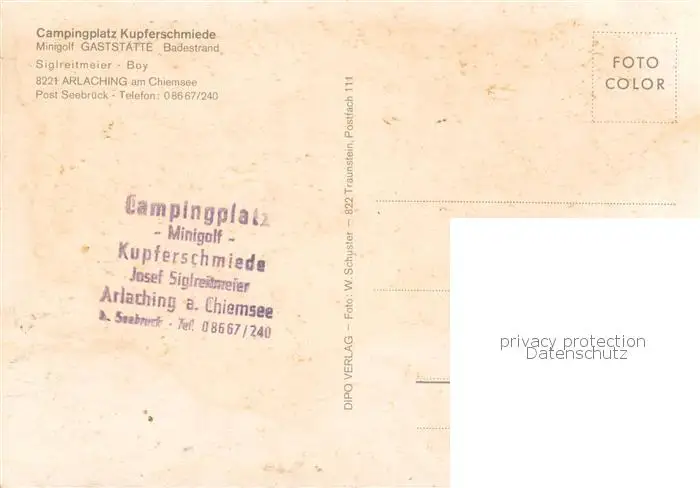 73859866 Arlaching Campingplatz Kupferschmiede Minigolf Gaststätte Badestrand Arlaching postalisch nicht gelaufen nach 1965 Erhaltung siehe scans [WerneD78] [WernPID7 ]