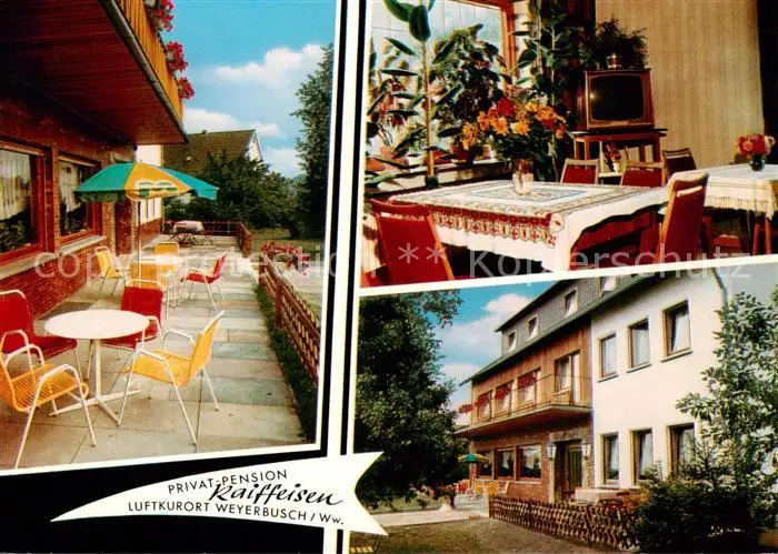 73862954 Weyerbusch Privat Pension Raiffeisen Gaststube Terrasse Weyerbusch postalisch nicht gelaufen nach 1965 Erhaltung siehe scans [WerneD78] [WernPID7 ]