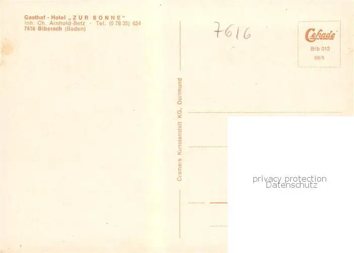 73863113 Biberach_Baden Brauereigasthof Sonne Gastraeume Biberach_Baden postalisch nicht gelaufen nach 1965 Erhaltung siehe scans [WerneD78] [WernPID7 ]