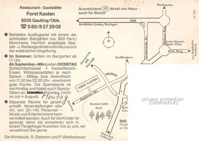 73863253 Gauting Restaurant Gaststaette Forst Kasen Gartenterrasse Gauting postalisch nicht gelaufen nach 1965 Werbekarte (keine Postkarte) Erhaltung siehe scans [FriedD77] Werbekarte (keine Postkarte)[Frierer ]