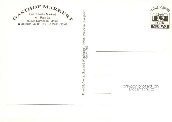 73863303 Nordheim_Main Gasthof Hotel Markert Nordheim Main postalisch nicht gelaufen nach 1965 Erhaltung siehe scans [FriedD77] [Frierer ]