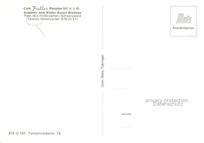 73863360 Hinterzarten Café Pension Faller Winter im Schwarzwald Hinterzarten postalisch nicht gelaufen nach 1965 Erhaltung siehe scans [FriedD77] [Frierer ]
