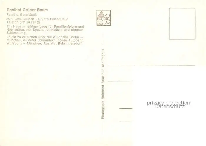 73863369 Bullach Gasthof Gruener Baum Gaststube Fremdenzimmer Saal Bullach postalisch nicht gelaufen nach 1965 Erhaltung siehe scans [FriedD77] [Frierer ]