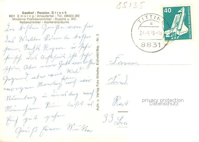 73864037 Emsing_Titting_Oberbayern Gasthof Pension Dirsch Gaststube Zimmer Emsing_Titting_Oberbayern postalisch gelaufen 1976 Erhaltung siehe scans [WerneD78] [WernPID7 ]