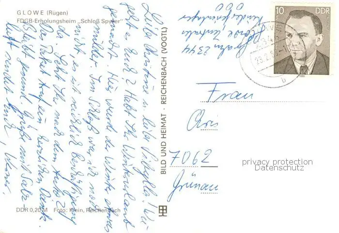 73865209 Glowe_Ruegen FDGB Erholungsheim Schloss Spyker Glowe Ruegen postalisch gelaufen 1986 Erhaltung siehe scans [WerneD78] [WernPID7 ]
