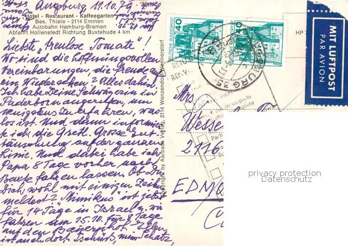 73865283 Hollenstedt Hotel Restaurant Kaffeegarten Hollenstedt postalisch gelaufen 1979 Erhaltung siehe scans [FriedD77] [Frierer ]