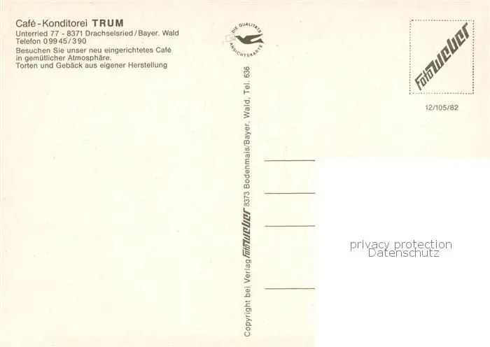 73865529 Unterried_Viechtach Café Konditorei Trum Panorama Unterried Viechtach postalisch nicht gelaufen nach 1965 Erhaltung siehe scans [FriedD77] [Frierer ]