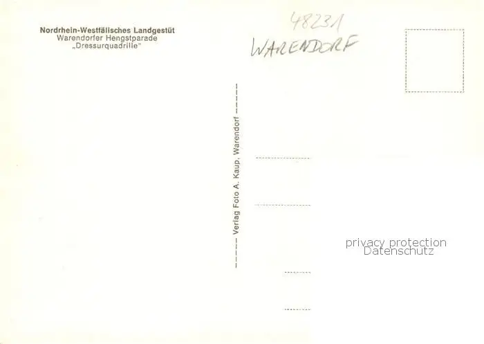 73865699 Warendorf Nordrhein-Westfaelisches Landgestuet Warendorfer Hengstparade Dressurquadrille Warendorf postalisch nicht gelaufen nach 1965 Erhaltung siehe scans [FriedD77] [Frierer ]