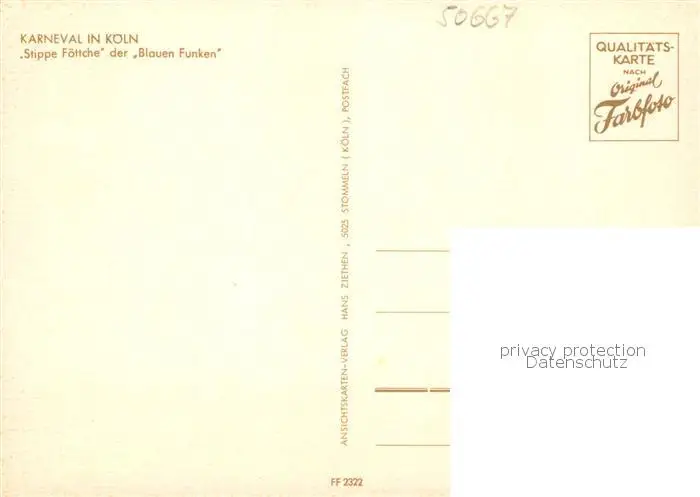 73866090 Koeln__Rhein Karneval Stippe Foettcheder Blauen Funken postalisch nicht gelaufen nach 1965 Erhaltung siehe scans [WerneD78] [WernPID7 ]