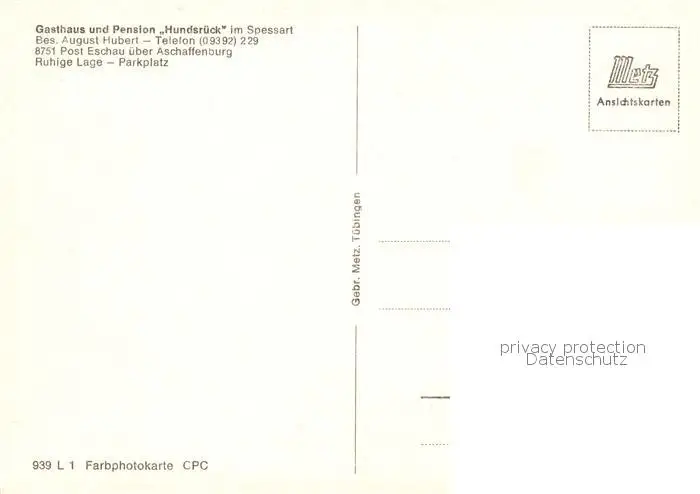 73866288 Eschau_Unterfranken Gasthaus Pension Hundsrueck Eschau Unterfranken postalisch nicht gelaufen nach 1965 Erhaltung siehe scans [WerneD78] [WernPID7 ]