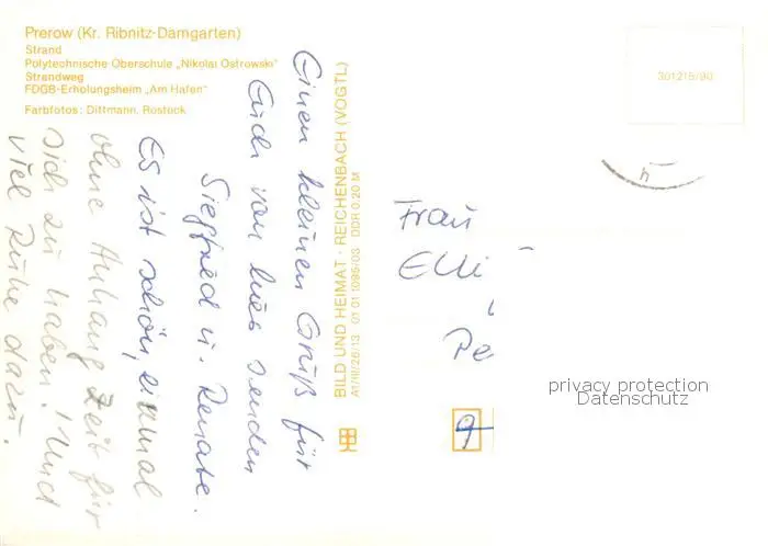 73867218 Prerow_Ostseebad Strand Polytech Oberschule Nikolai Ostrowski Strandweg FDGB Erholungsheim Am Hafen Prerow_Ostseebad postalisch gelaufen nach 1965 Erhaltung siehe scans [WerneD78] [WernPID7 ]