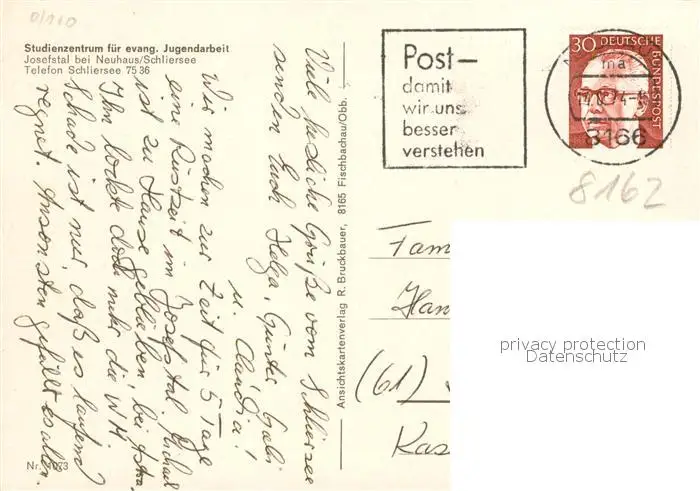 73868376 Josefstal_Neuhaus_Schliersee Studienzentrum fuer ev Jugendarbeit postalisch gelaufen 1974 Erhaltung siehe scans [WerneD78] [WernPID7 ]