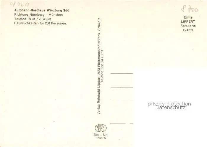 73868378 Wuerzburg_Bayern Autobahn Rasthaus Wuerzburg Sued Gastraeume postalisch nicht gelaufen nach 1965 Erhaltung siehe scans [WerneD78] [WernPID7 ]