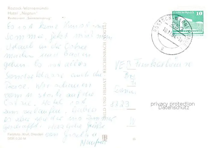 73868552 Warnemuende_Ostseebad Hotel Neptun Restaurant Seemannskrug Warnemuende_Ostseebad postalisch gelaufen 1984 Erhaltung siehe scans [WerneD78] [WernPID7 ]
