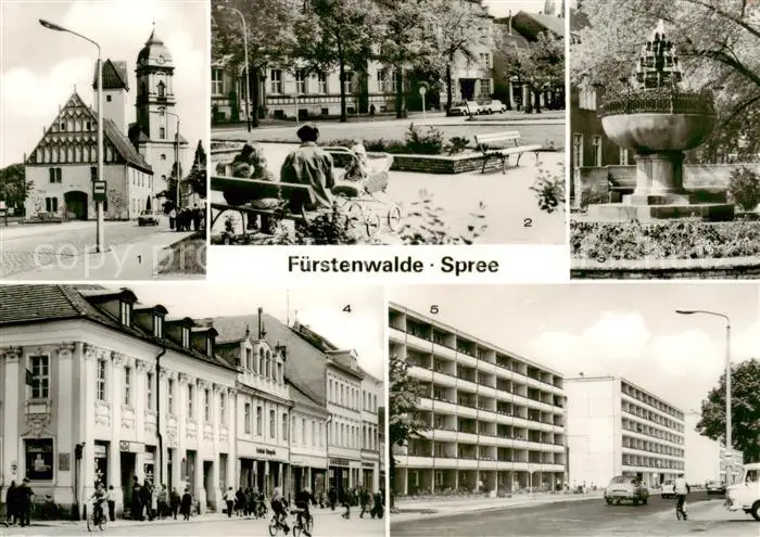 AK / Ansichtskarte 73868633 Fuerstenwalde_Spree Rathaus und Dom Ernst Thaelmann Strasse Grassnick Brunnen Muehlenstrasse Fuerstenwalde_Spree