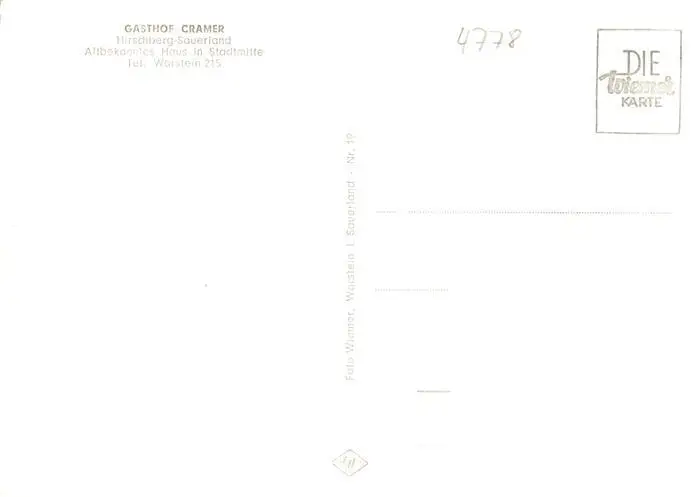 73869848 Hirschberg__Sauerland_Warstein Gasthof Cramer postalisch nicht gelaufen nach 1965 Erhaltung siehe scans [FriedD77] [Frierer ]